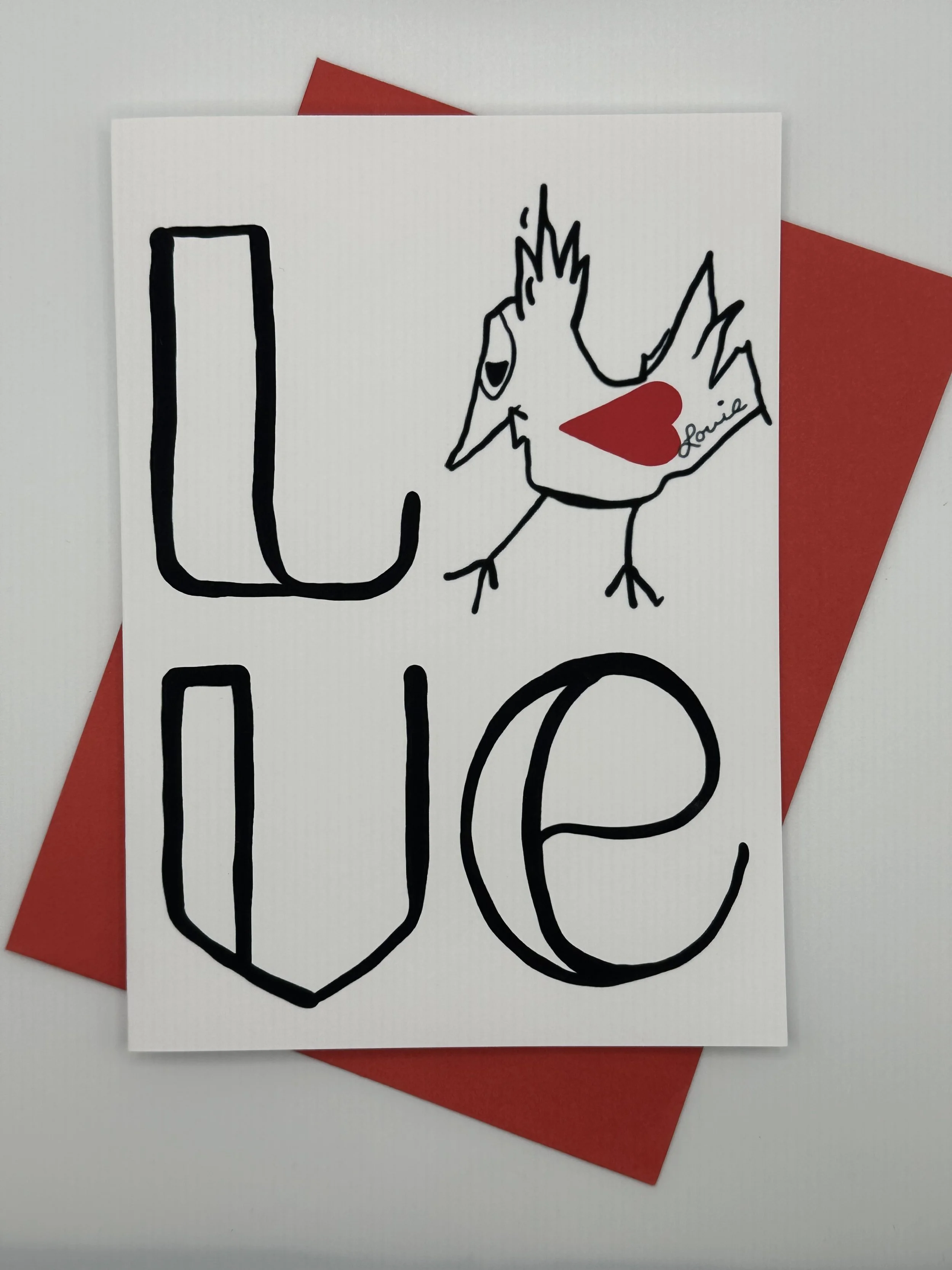 Louie the Chicken with the simple but powerful word - LOVE. The perfect card to share any day of the week!
